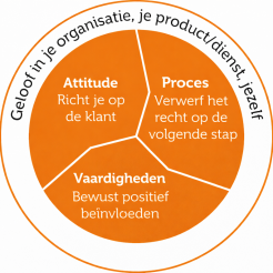 Nu geloven wij vanzelfsprekend in het effect van trainen. Waar we echter niet in geloven, is het aanleren van trucjes. We zijn ervan overtuigd dat mensen die vanuit persoonlijke kracht in staat zijn de klant te raken de meest duurzame resultaten zullen behalen. Dat vraagt niet alleen aandacht voor het proces en de vaardigheden. Mensen met een klantgerichte attitude hoef je geen spiekbriefje te geven waarop staat dat ze moeten zeggen “ja, ik begrijp wat je zegt of ik snap dat dit vervelend voor u is”. Zij zijn oprecht geïnteresseerd en hebben een natuurlijke drang om te willen weten wat hun klant beweegt. Anders kunnen zij ze immers niet helpen.